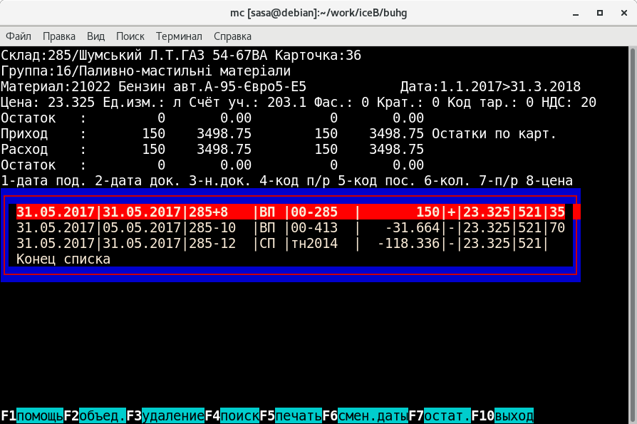 ------------------------- |Введите номер карточки.| | | ------------------------- F10 - выход. Введите номер карточки записи которой вы хотите переписать в текущую карточку и нажмите "Enter". На экране появиться меню: ------------------------------------------------------------------ | В Н И М А Н И Е !!! | |Переписываем с уничтожением записи из карточки N1 в карточку N2.| | Все правильно ? Вы уверены? | | Да Нет | ------------------------------------------------------------------