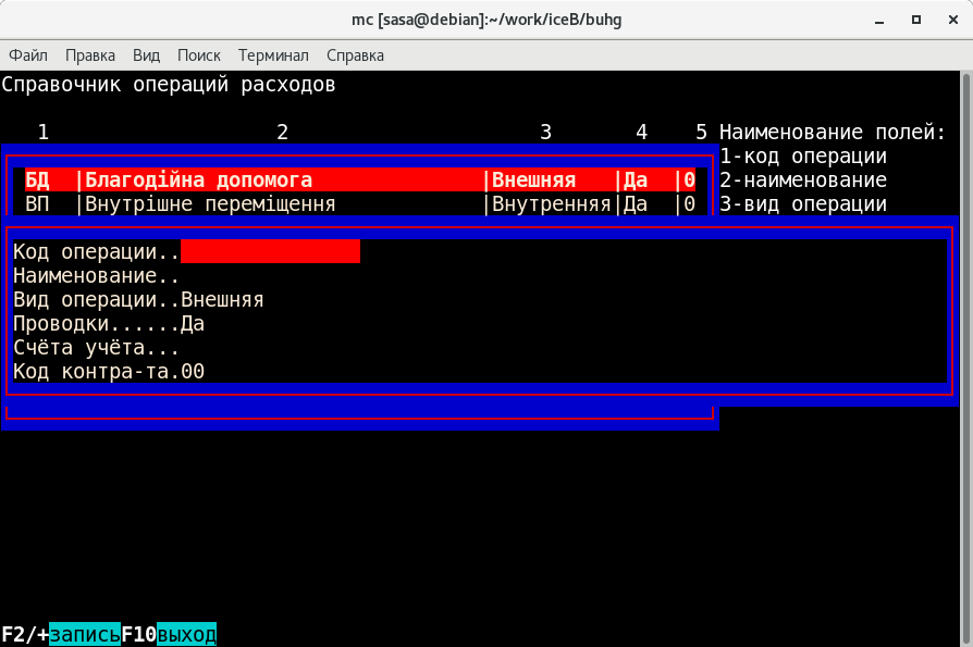 F2 - ввод новой записи;