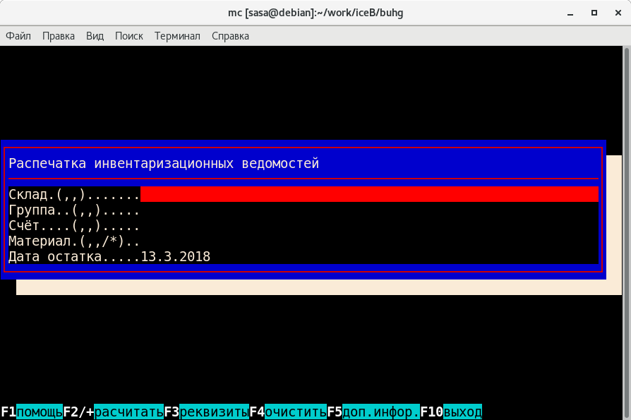 F3 - просмотр списков складов, групп материалов, материалов, счетов;